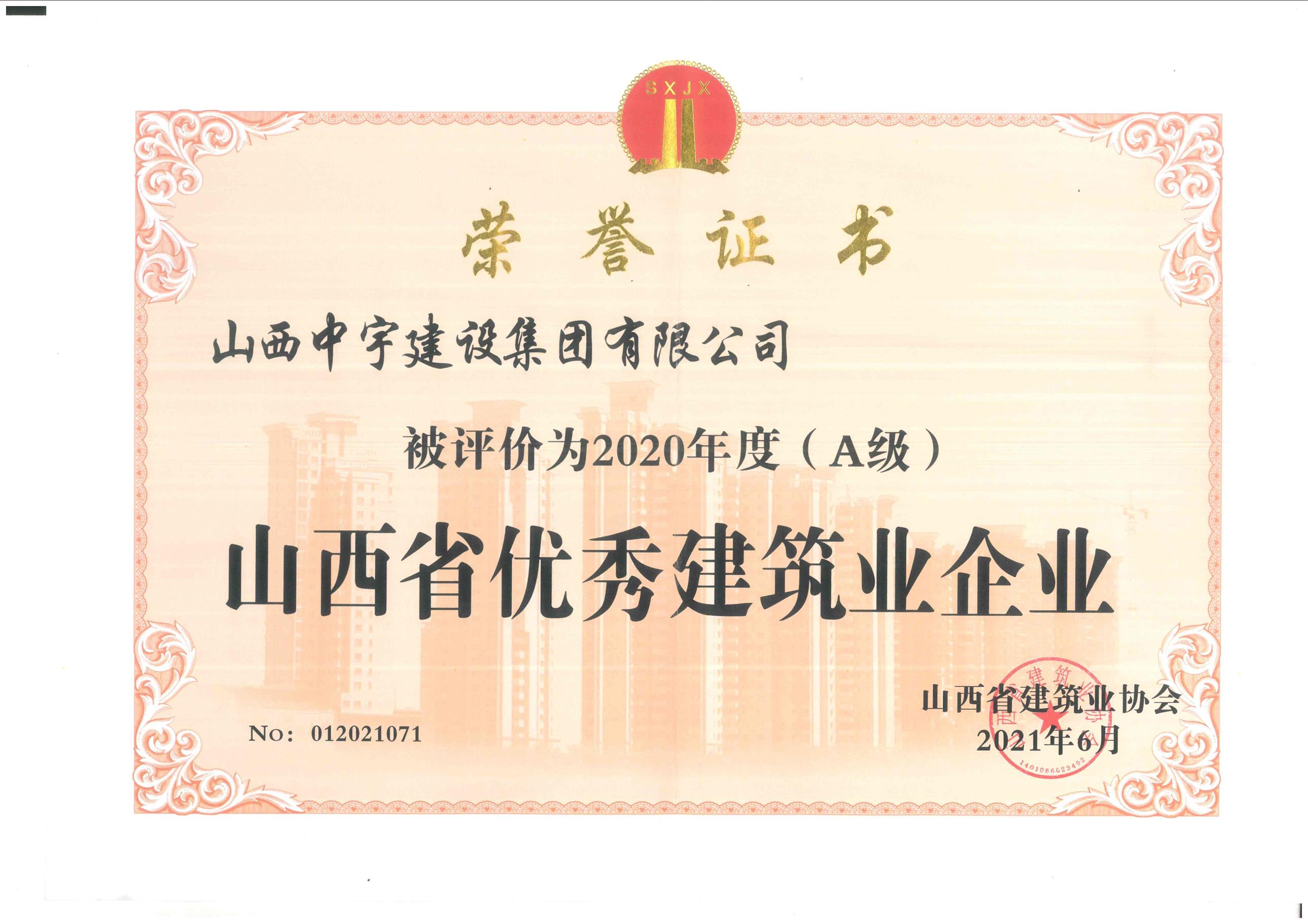 2020年度山西省優(yōu)秀建筑業(yè)企業(yè)