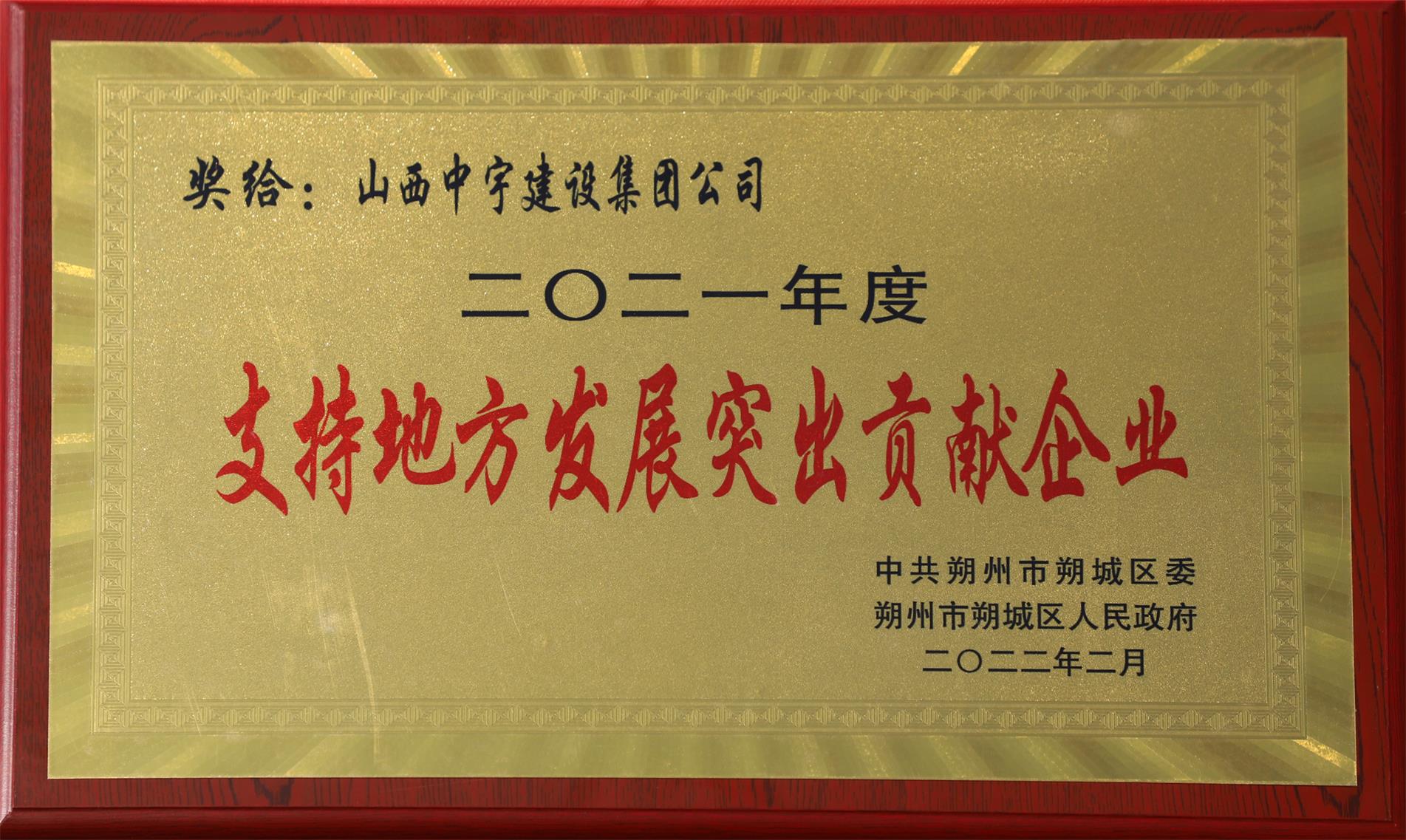 2021年度支持地方發(fā)展突出貢獻(xiàn)企業(yè)
